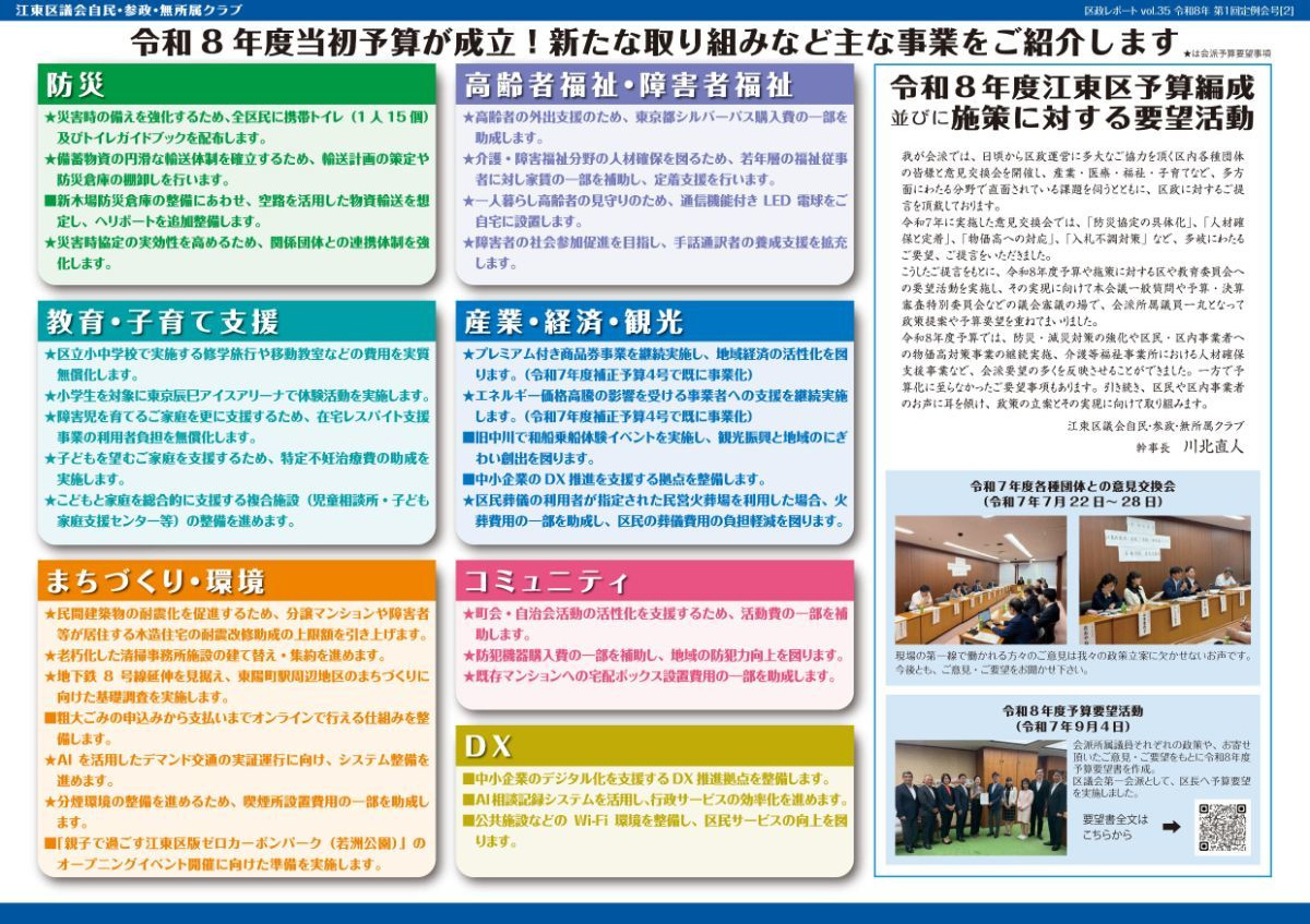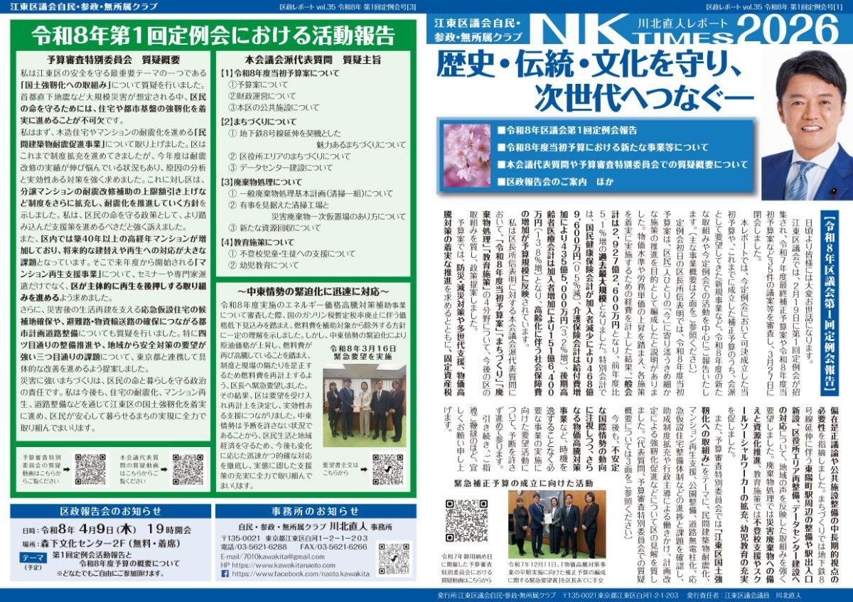 区政レポートvol35 令和8年第1回定例会号を掲載しました